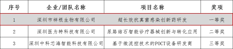 The industry finals of the 16th China Shenzhen Innovation and Entrepreneurship Competition have recently come to an end. Sungening Biotechnology's independently developed innovative drug SG5035 project, "Research and Development of Ultra Long Effect Antifungal Infection Innovative Drugs," participated in the Longgang District Preliminary Competition of the 16th China Shenzhen Innovation and Entrepreneurship Competition and the Industry Finals of the Enterprise Group (Biomedical Field) of the 4th "Longgang Double Creation Star" Innovation and Entrepreneurship Competition. After fierce competition, it stood out from many projects and ultimately won the first prize.